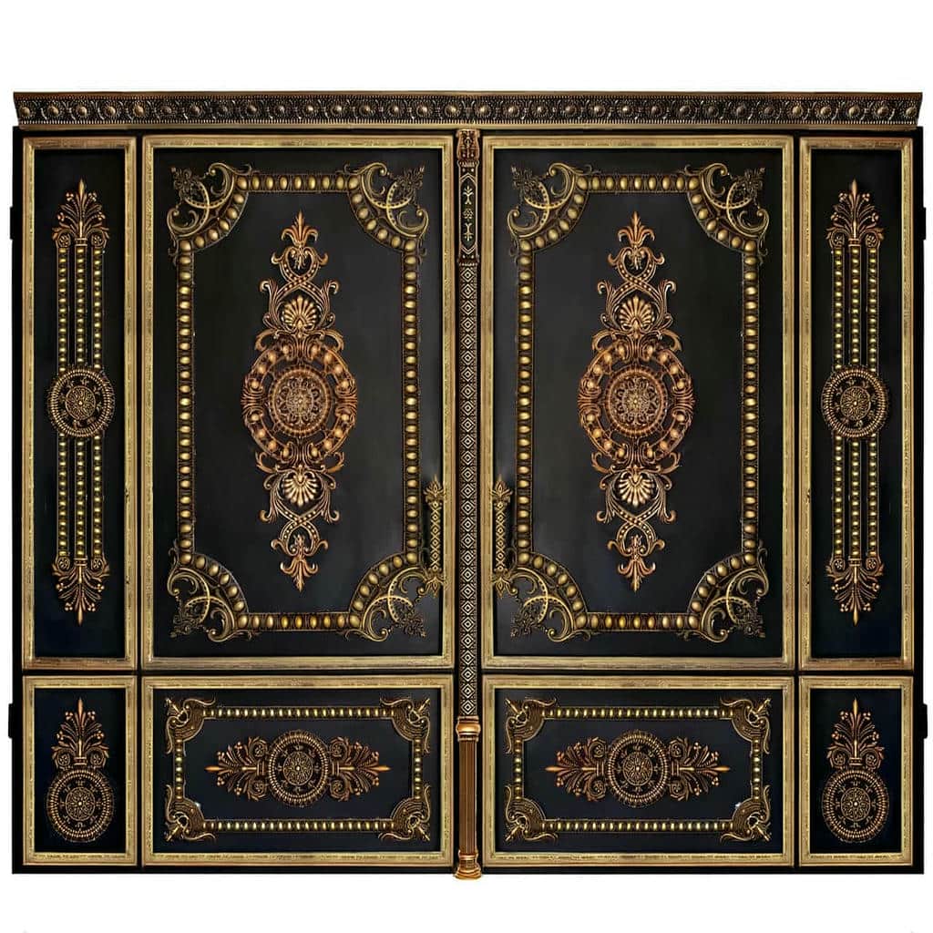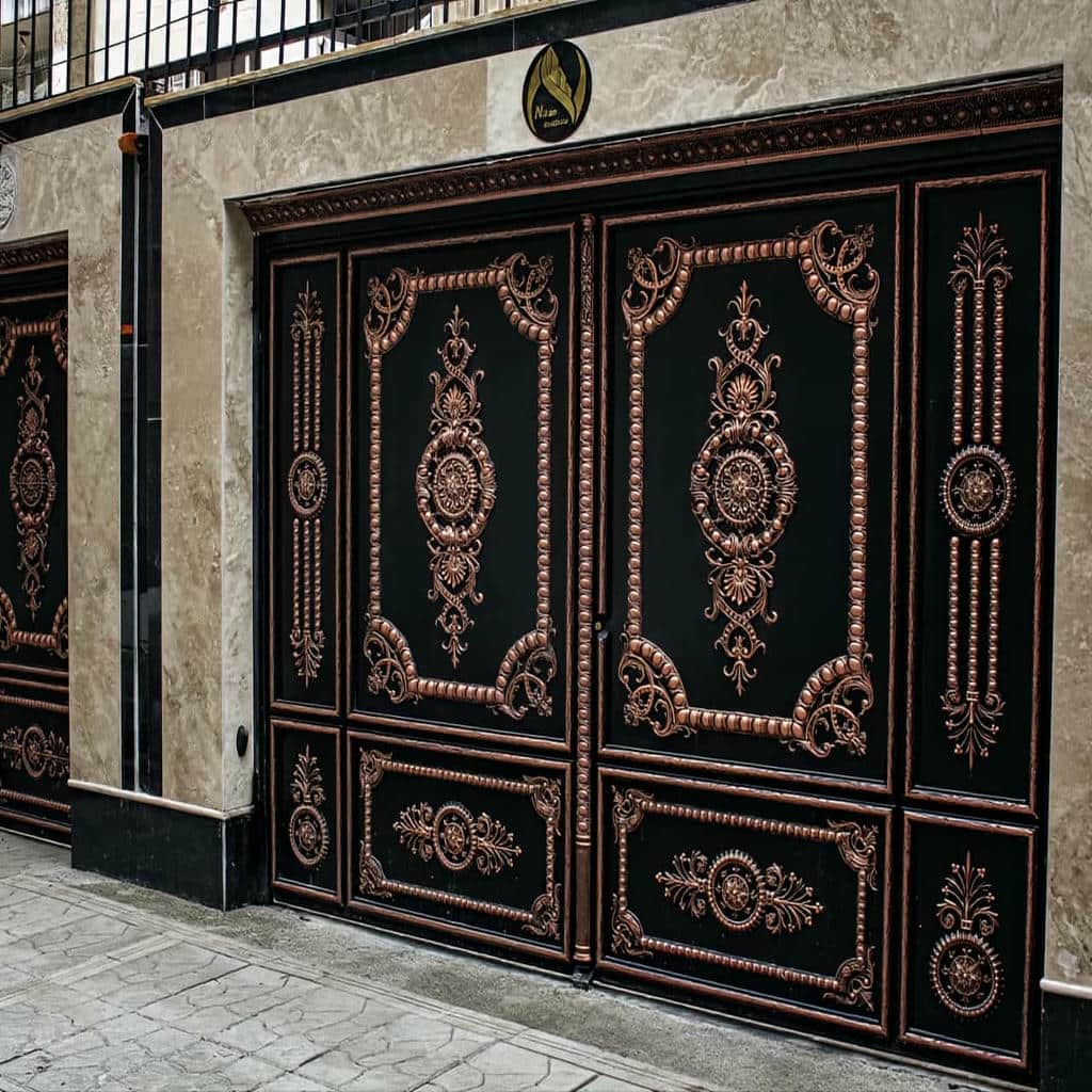 درب صدفی دولنگه اصفهان معمولاً با عرض 280–360 سانتی متر و ارتفاع 240–300 سانتی متر تولید می شود. این درب از فلز سنگین و قطعات فرفورژه ی ریخته گری شده (با تکنولوژی شوتینگ) تشکیل شده که ظرافت و کیفیت رنگ پذیری بالایی دارند. این ویژگی ها باعث می شود درب صدفی به عنوان یک عنصر هنری و مقاوم برای ورودی های ساختمان های کلاسیک و ویلاها مناسب باشد.